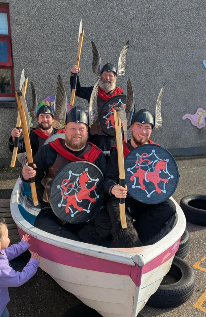 On Friday we were delighted to welcome Norik Up Helly Aa Guizer Jarl Floki Skjaldcrafter (Liam Spence) and his 29-strong Jarl Squad to the school – many of whom are former pupils.