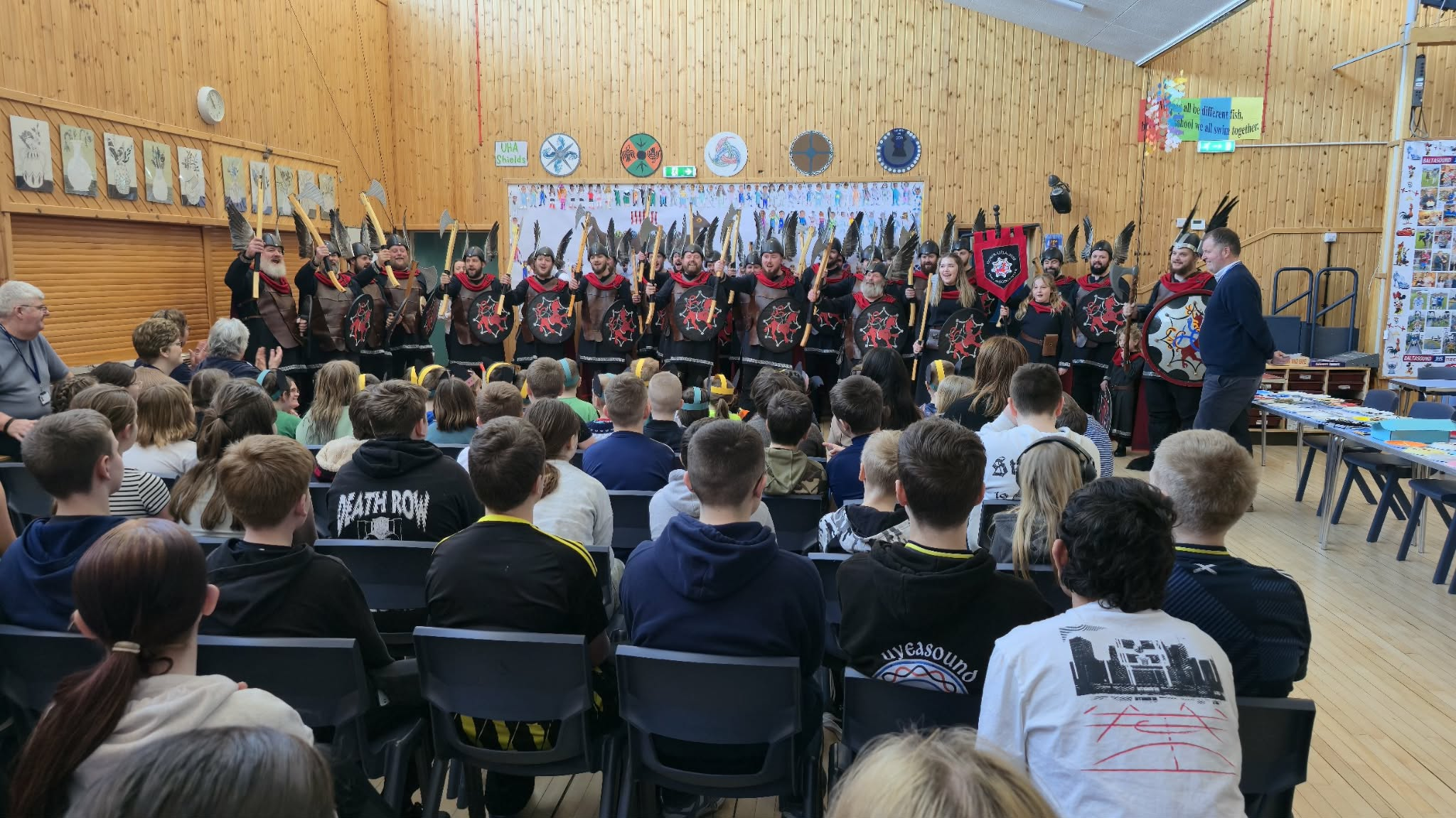 On Friday we were delighted to welcome Norik Up Helly Aa Guizer Jarl Floki Skjaldcrafter (Liam Spence) and his 29-strong Jarl Squad to the school – many of whom are former pupils.
